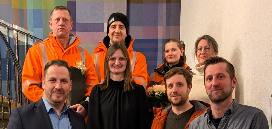 Untere Reihe von links: Bürgermeister Christian Zuber, Franziska Dalke, Bauhofleiter Johannes Hüttner und Bauamtsleiter Frank Müller