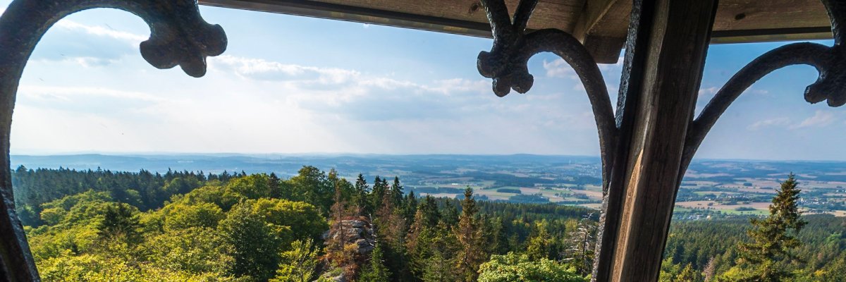 Viele Besucher des Waldsteins fragen sich, warum der berühmte Aussichtspunkt eigentlich „Schüssel“ heißt, wo man doch überhaupt kein Anzeichen für eine solche Form auf der 877 Meter hohen Felsnase erkennen kann. Die Wahrheit ist, dass es heute tatsächlich keine Spur mehr gibt, die auf die Herkunft des Namens schließen lassen könnte. Dank einiger alter Ansichten aus der Zeit vor der Revolution 1848 wissen wir, dass es einst tatsächlich eine „Schüssel“ gegeben hat. Es handelte sich dabei um die größte im Fichtelgebirge existierende natürliche Verwitterungsmulde, die durch Erosion und durch Wettereinflüsse auf dem Felsenturm entstanden ist. Schon früh wussten die Menschen um die Vorzüge dieses Ausgucks und so ist es nicht verwunderlich, dass sich der Wartturm der Ostburg auf dem Schüsselfelsen befunden hat, wodurch man die natürliche Umgebung der Anlage perfekt ausnutzte.
